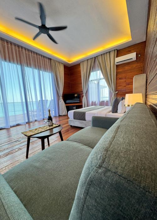 Each villa is a haven of tranquility, floating gracefully above the crystal-clear waters. Designed with elegance and comfort in mind, our villas offer stunning views, modern amenities, and direct access to the ocean.